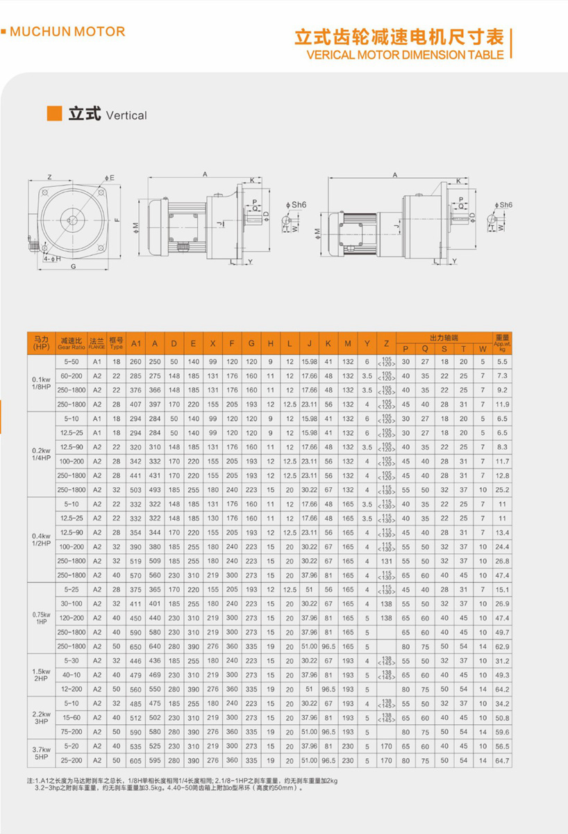 中型齿轮减速电机扭矩表及接线图